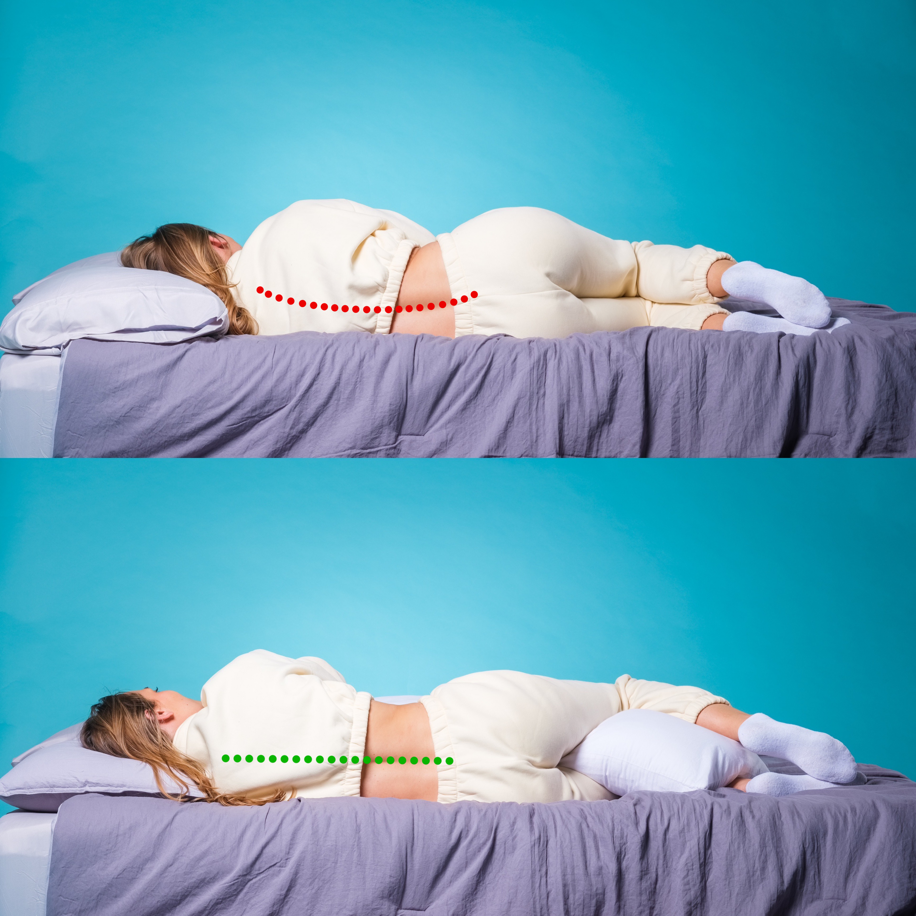 Sleeping on your side with Shloof between your knees helps align your lower back and pelvis to decrease aches and pains
