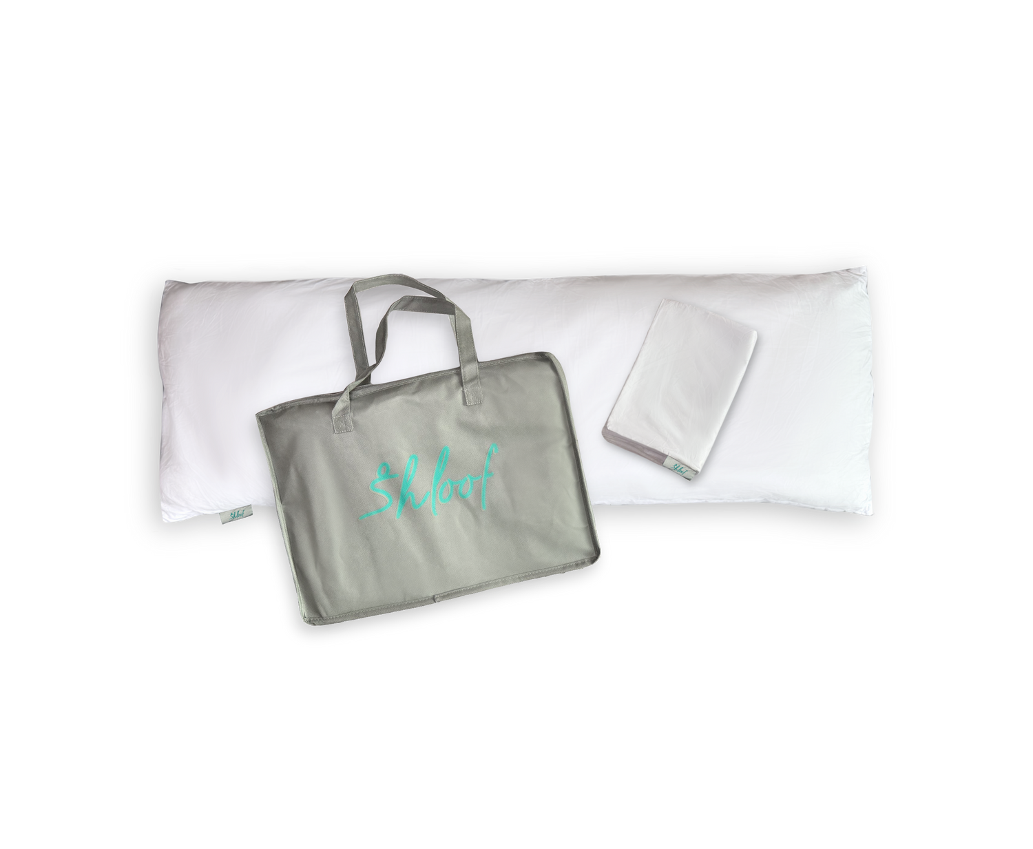 Weighing 10.8lbs, the patent-pending Shloof weighted body pillow utilizes an internal layer of weighted beads to provide full-body comfort when cuddled. The added weight encourages feelings of calm and relaxation when it's time for bed.